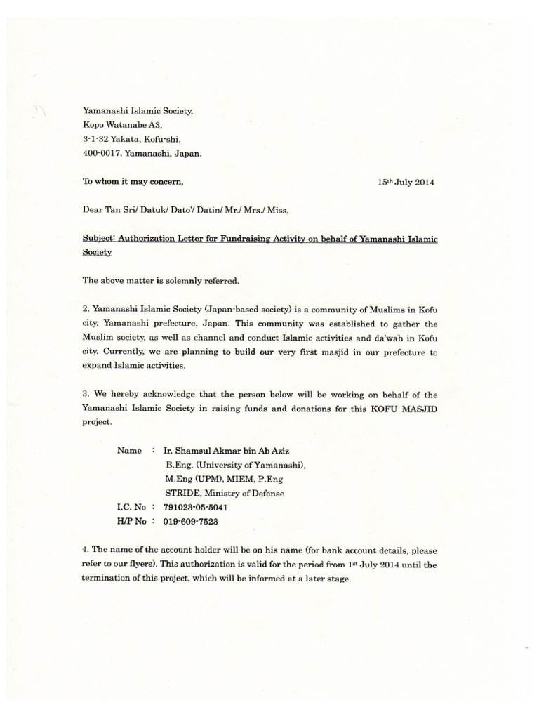 Education malaysia global services (emgs) is wholly owned by the ministry of higher education and is the official gateway to studying in malaysia as b. Teluk nibong, 07000 pulau langkawi, kedah darulaman, malaysia.phone: _, hereby authorise _ (name of the applicant's representative), who is my. This document needs to be signed by an authorized manager or owner and give the holder and operators the right to act on. Template sample business partnership agreement letter covenant against encumbrances malaysia rental agreement sample free partnership agreement template word rent to own contract forms lease. The following letter is a sample authorization letter for releasing medical records. In your daily schedule, it is not every day that you need to seek permission from someone that too through a formal procedure. Letter of authorization for 1mid registration and thumbprint collection for foreign worker permit renewal referring to the matter above. If you want more help regarding how to write an authorization letter, check out the tips given below. It is an important document used by various entities, such as businesses, schools, property matters, etc. We are in malaysia now bringing a product to give to friends for sample but the pharmacy is refusing to release it because they ask us apply a product registration in their country and we are asked a letter of authorization to apply for it. Director malaysia my second home centre 23rd floor, menara dato. Home » letter of authorization » sample for authorization letter for document processing.